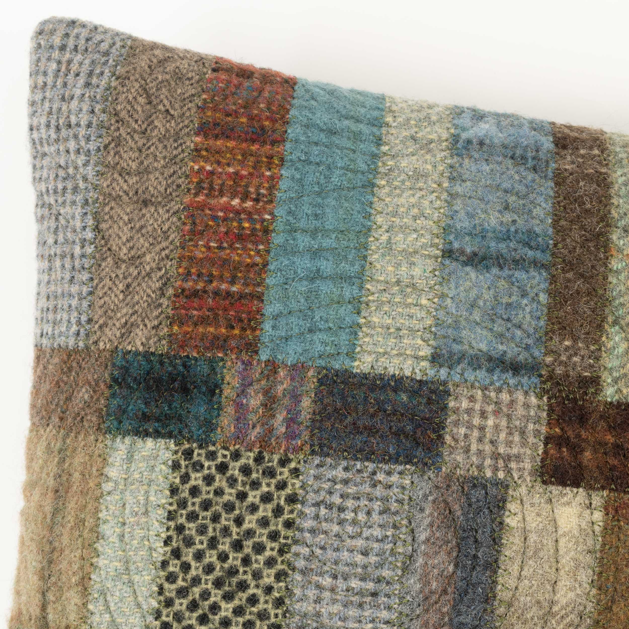 Each cushion features Jen’s hand-dyed wool flannel on the front and plush, durable velvet on the back. The surface is quilted with freehand stitching — like doodling with a sewing machine — to add playful texture and individuality. No computerized patterns here — just slow, intentional craftsmanship.