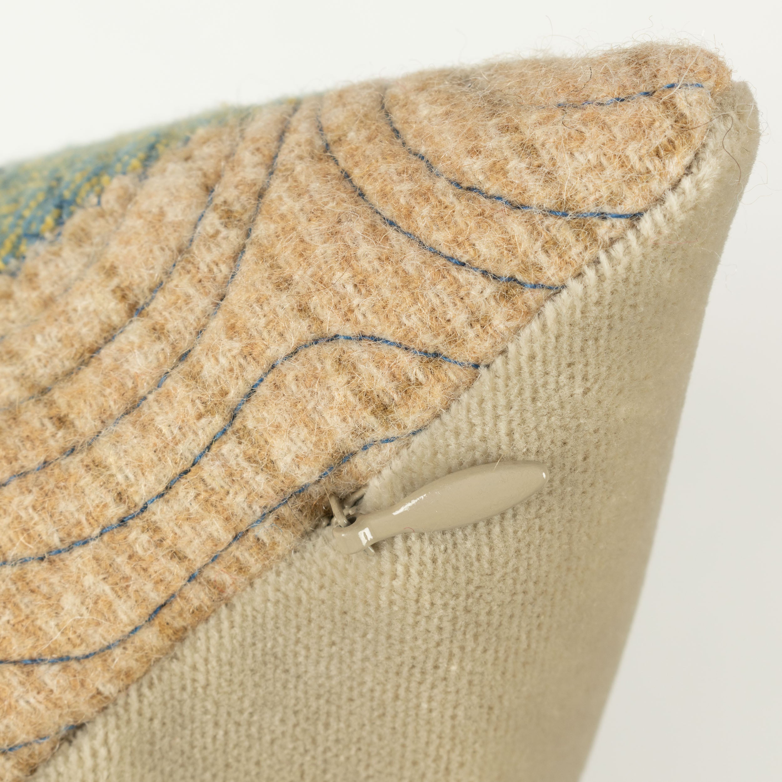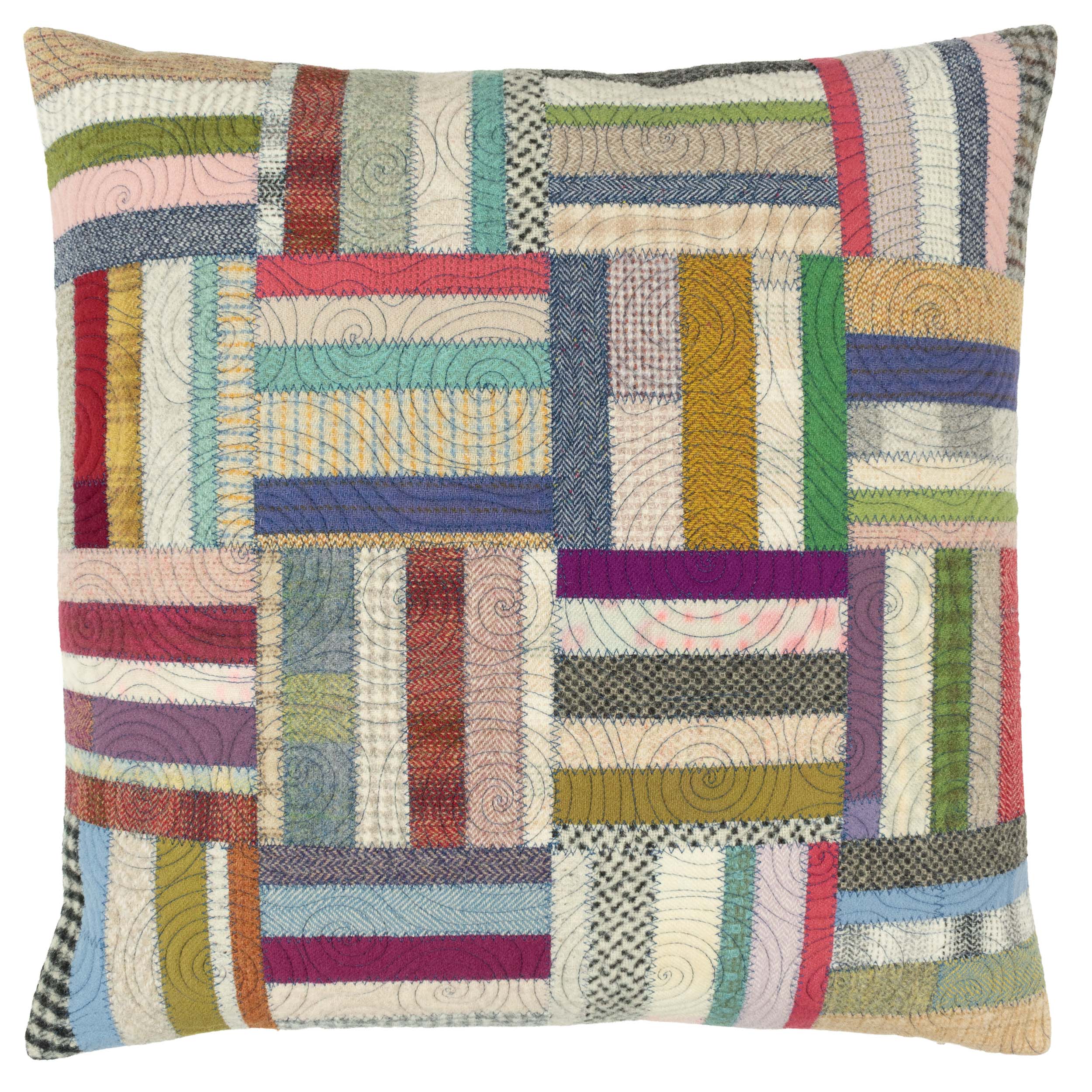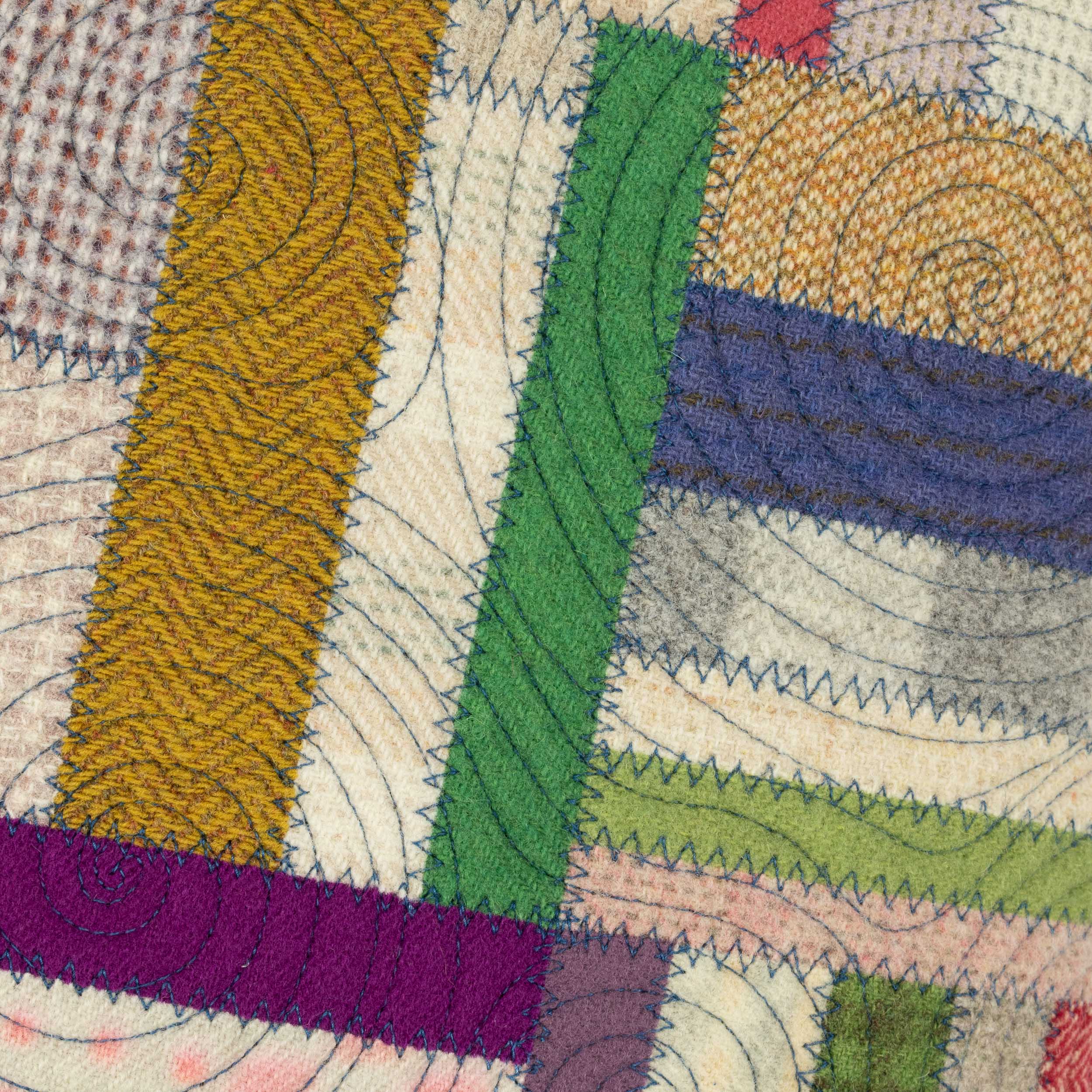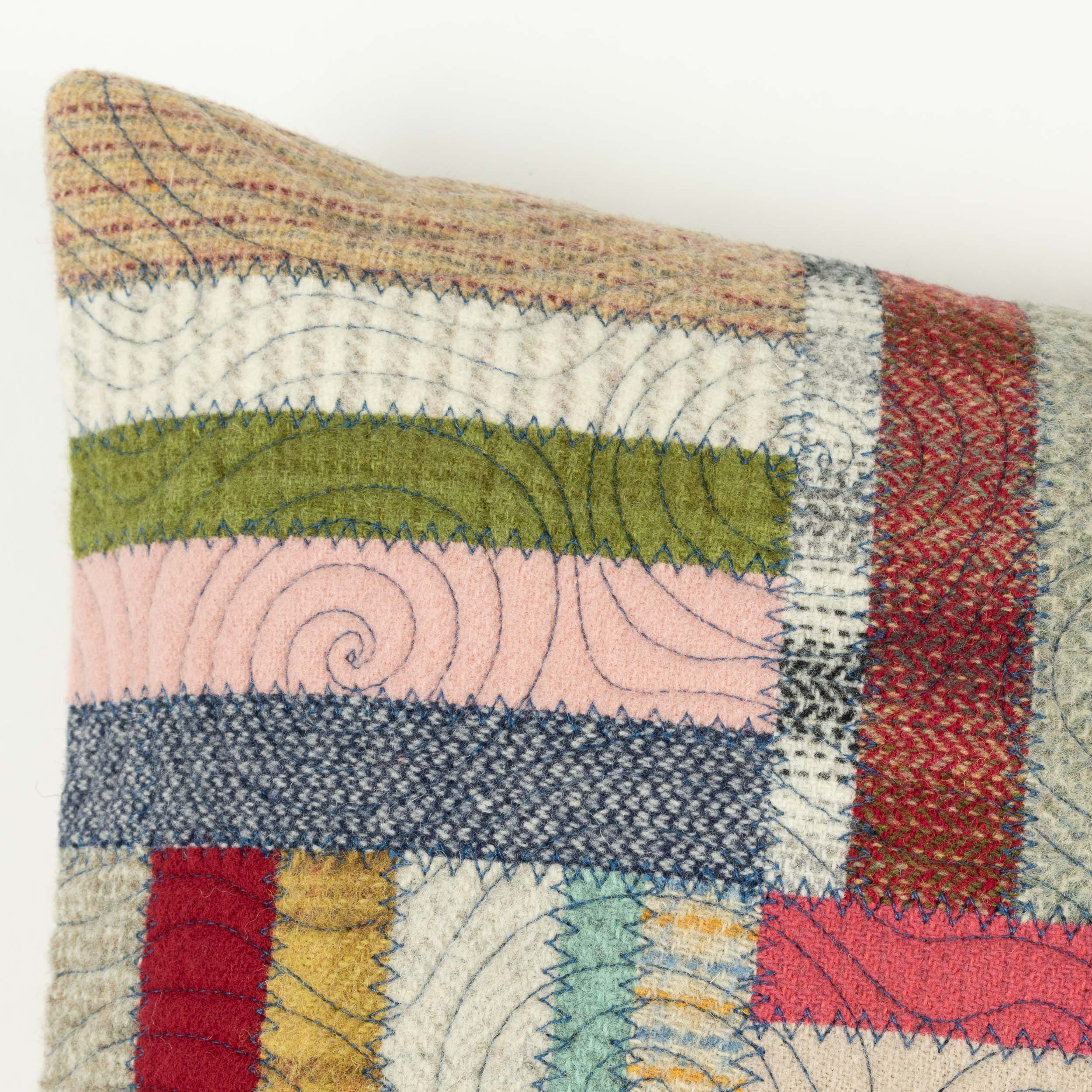 Each cushion features Jen’s hand-dyed wool flannel on the front and plush, durable velvet on the back. The surface is quilted with freehand stitching — like doodling with a sewing machine — to add playful texture and individuality. No computerized patterns here — just slow, intentional craftsmanship.
